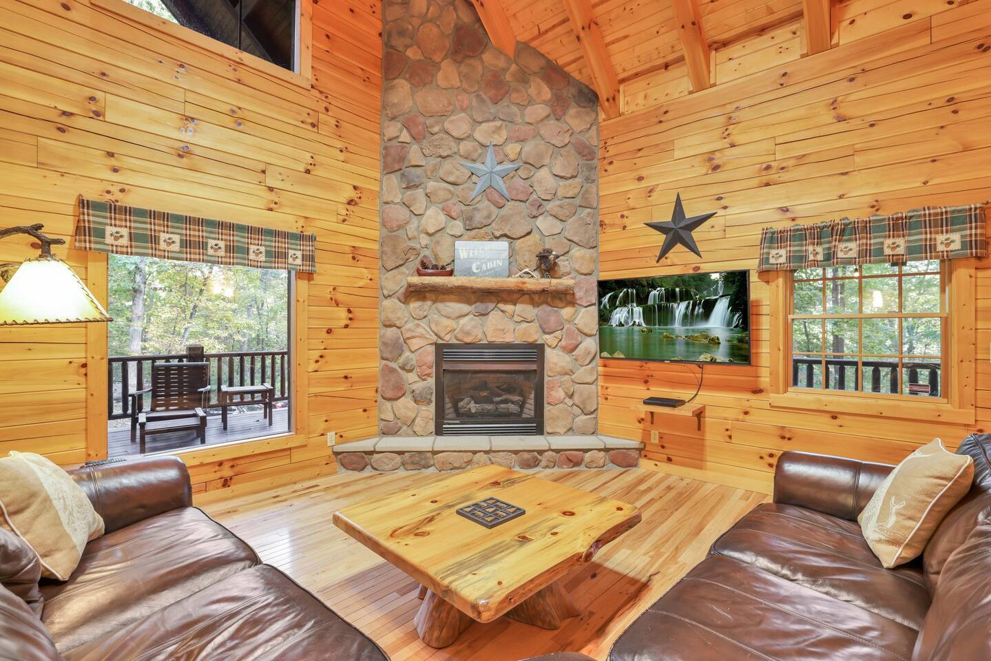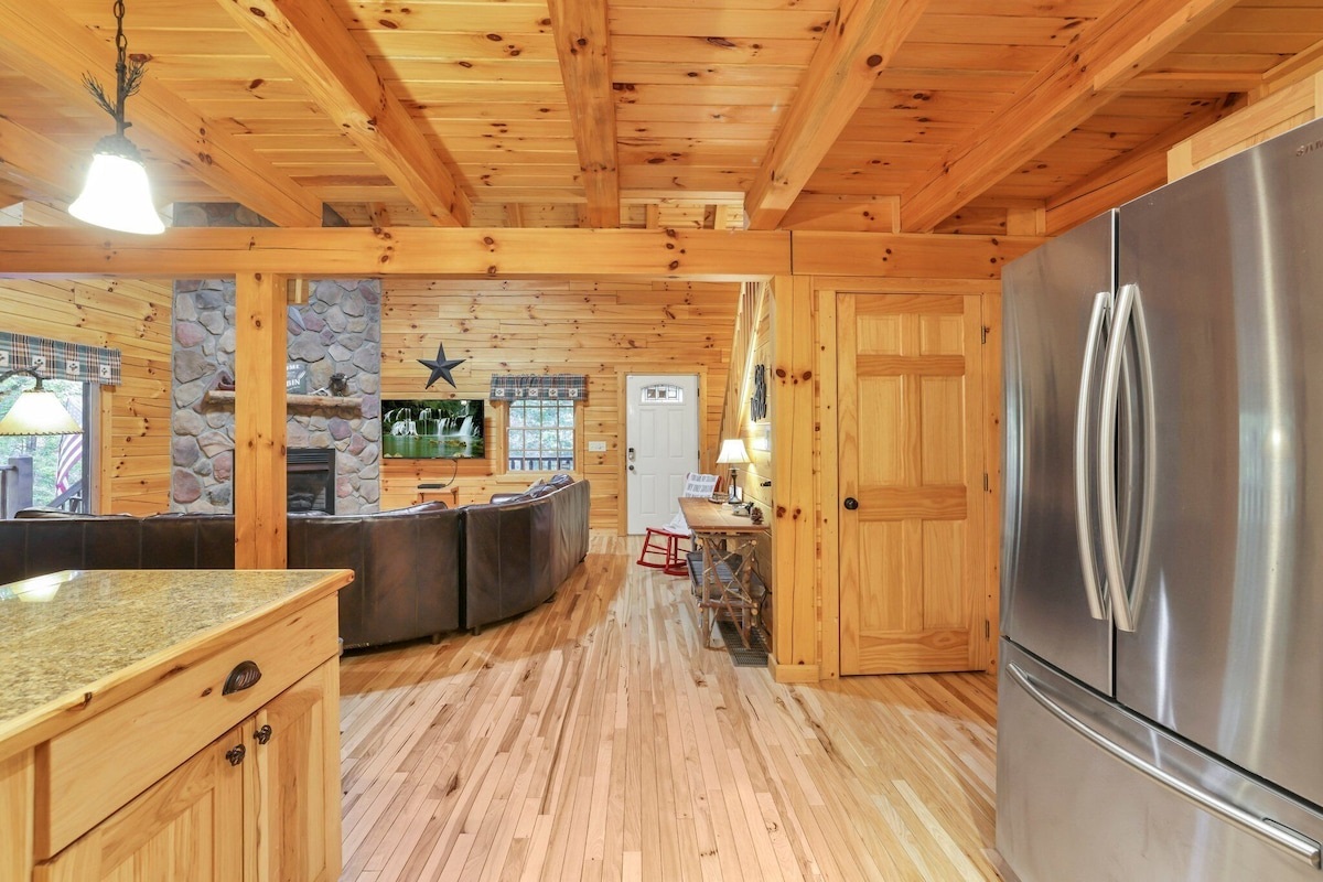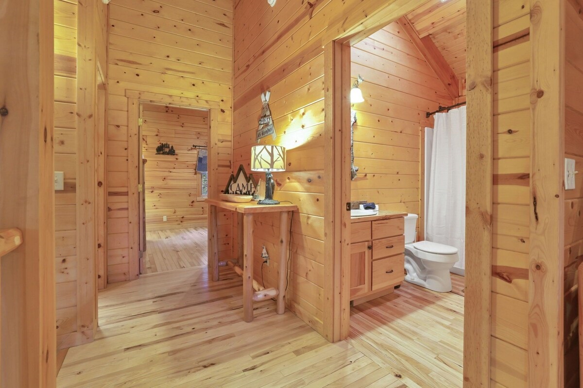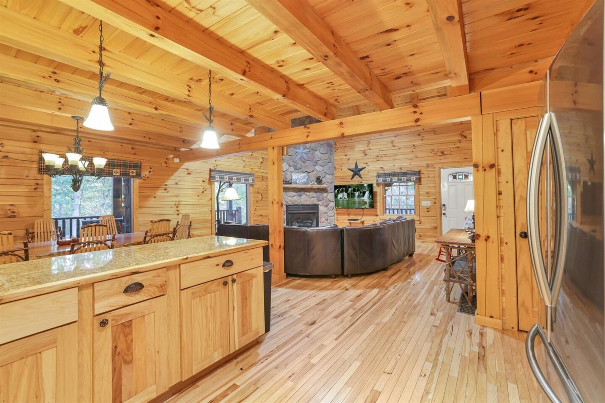 4 Bedrooms • 4 Bathrooms (3 full, 1 half) 4 Baths (3 full, 1 half) • Sleeps 1-14Tucked in the treetops, escape to this spacious 4-bedroom, 3.5-bath retreat, your haven for relaxation and family bonding. With sleeping space for up to 14 guests, it's perfectly designed with families in mind, offering a cozy atmosphere where you can create lasting memories together. The unique bunk loft is sure to bring out your inner child! If relaxation is on the agenda, let time slip away in our beautiful claw foot tub in the master bath or indulge in our brand NEW soothing hot tub to unwind under the stars. Catch a beautiful sunrise while sipping your favorite morning beverage on our amazing wrap around porch. After the days adventures, grill up some your favorites outside in natures peaceful surroundings.