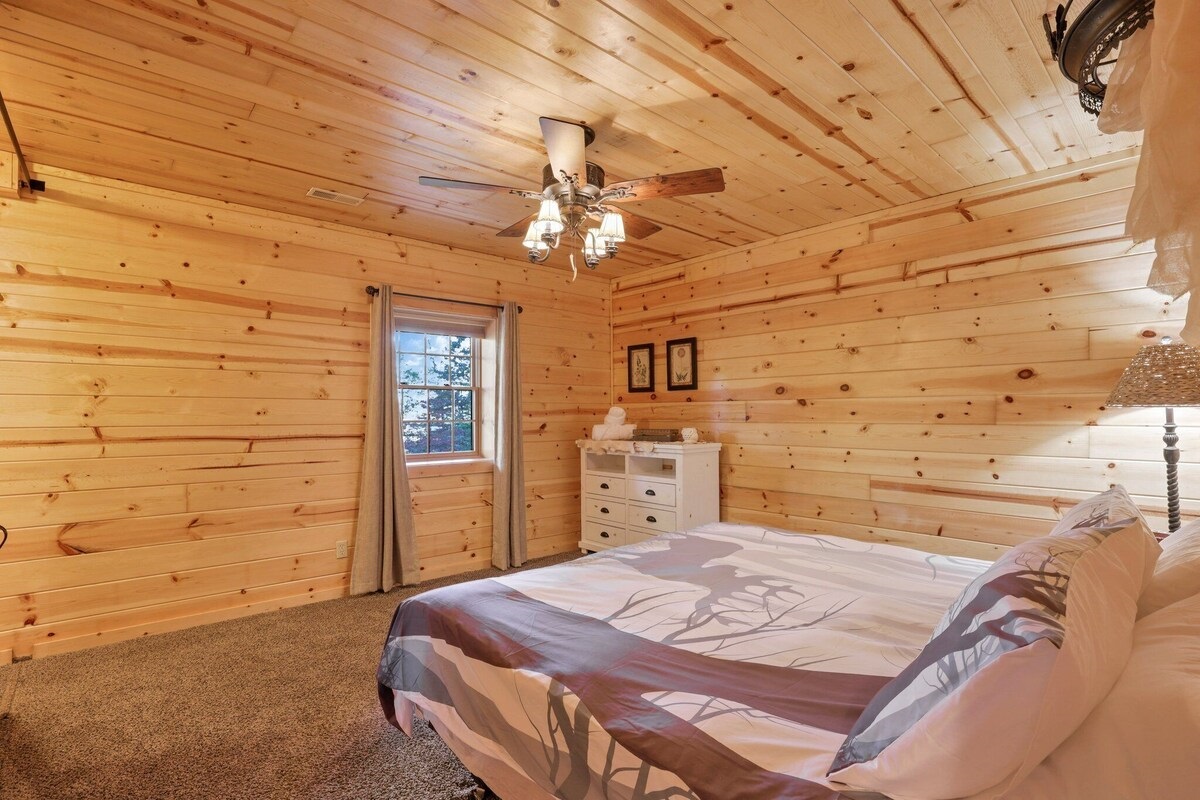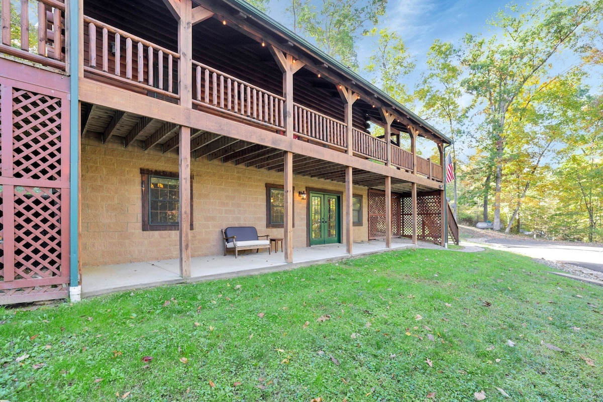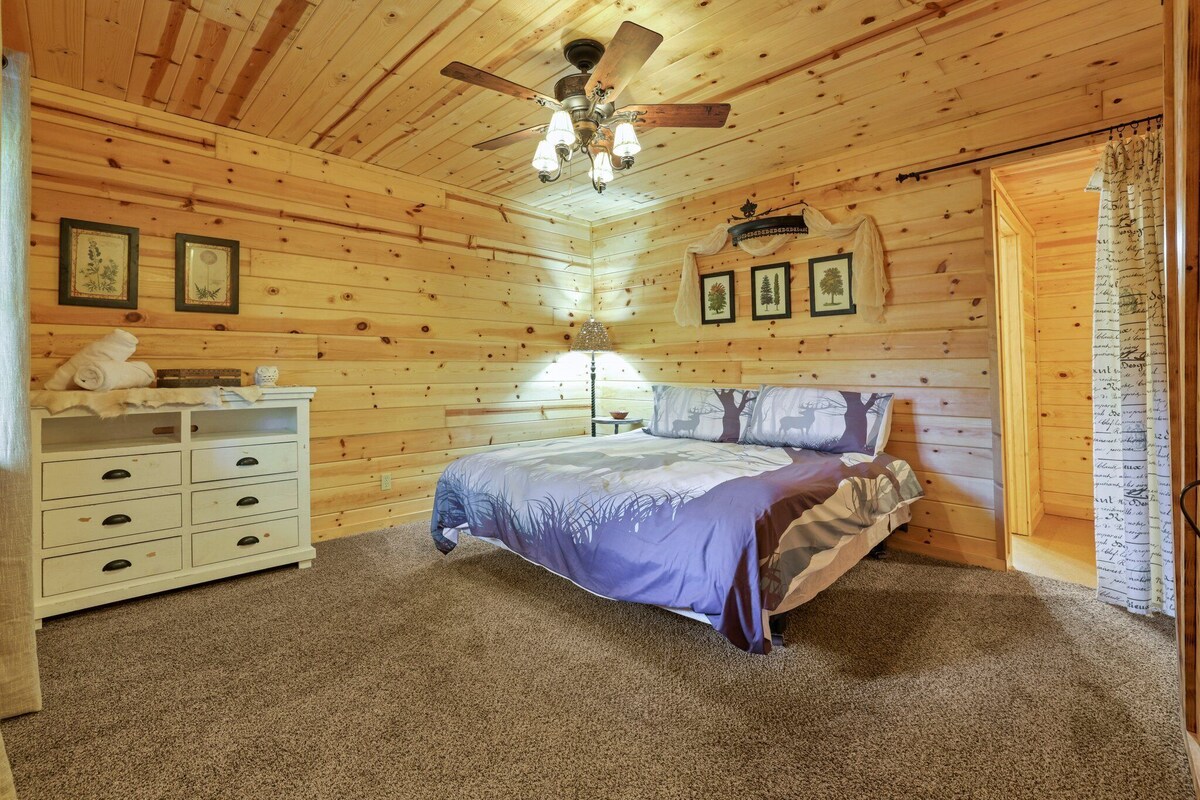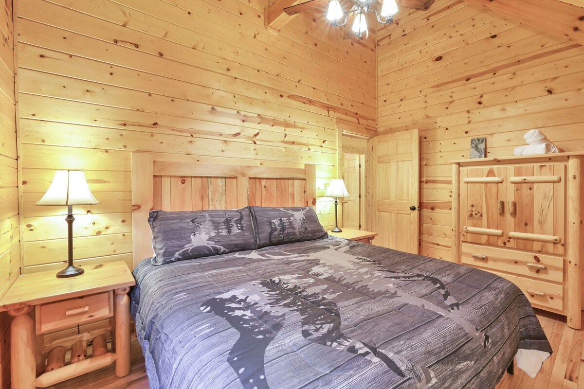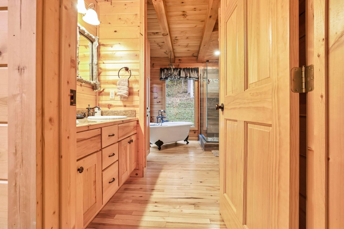 4 Bedrooms • 4 Bathrooms (3 full, 1 half) 4 Baths (3 full, 1 half) • Sleeps 1-14Tucked in the treetops, escape to this spacious 4-bedroom, 3.5-bath retreat, your haven for relaxation and family bonding. With sleeping space for up to 14 guests, it's perfectly designed with families in mind, offering a cozy atmosphere where you can create lasting memories together. The unique bunk loft is sure to bring out your inner child! If relaxation is on the agenda, let time slip away in our beautiful claw foot tub in the master bath or indulge in our brand NEW soothing hot tub to unwind under the stars. Catch a beautiful sunrise while sipping your favorite morning beverage on our amazing wrap around porch. After the days adventures, grill up some your favorites outside in natures peaceful surroundings.