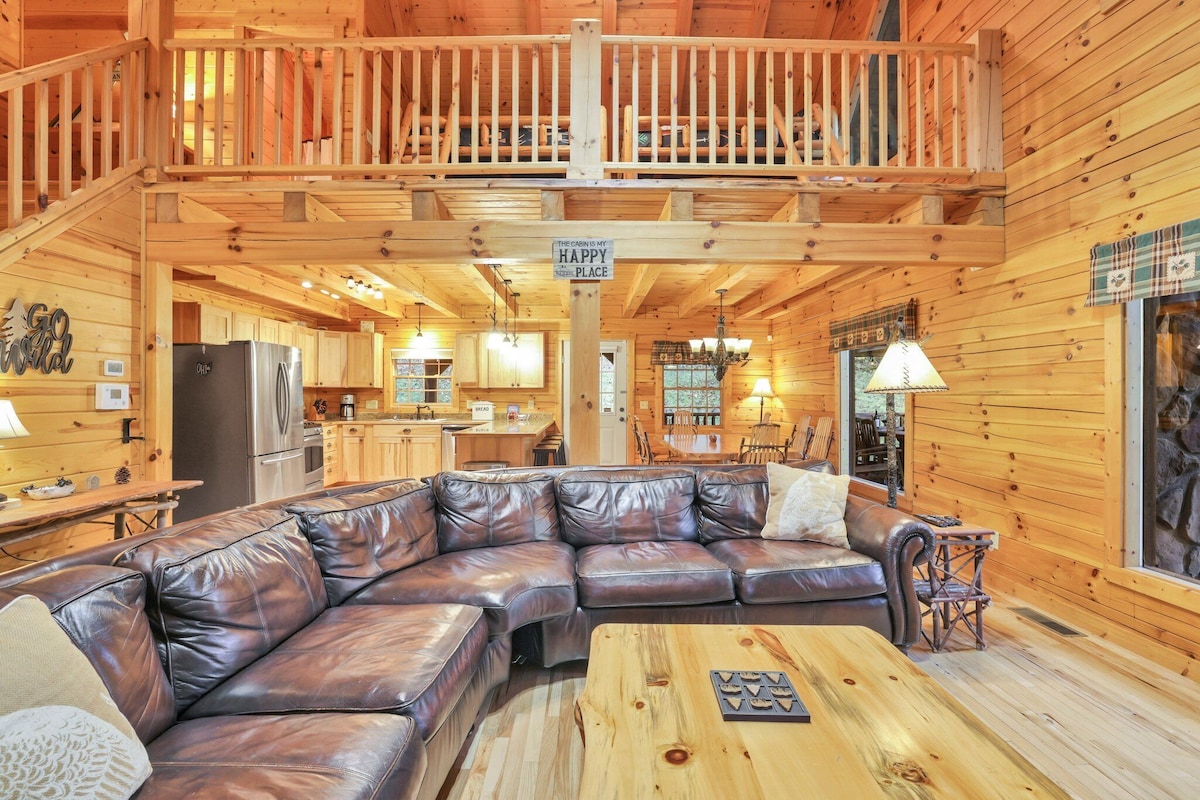 "We loved our stay at this cabin! They were able to accommodate an early check-in which was super helpful for our group. We booked this place for 9 adults and definitely had adequate space. The beds were comfortable, the cabin was clean, and the open layout was perfect. This was a great weekend getaway and we would definitely recommend this cabin to others." -Emma