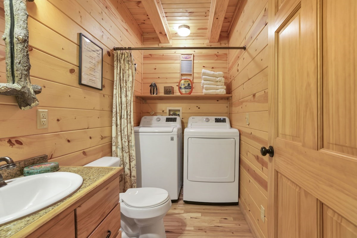 Half bathroom off the kitchen w/ laundry machines provided (detergent included)