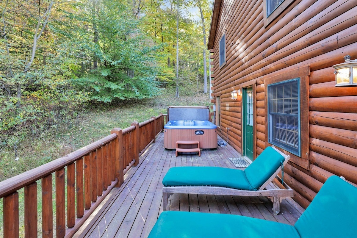Lounge in the sun or relax in the hot tub while you stay with us at Hocking Hideaway!